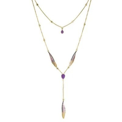 Главный символ коллекции Libelle — стрекоза и ее крылья, как отражение вечной женственности, любви, счастья и красоты, а также неповторимой стилистики модерна. Яркие краски витражной эмали, яркий блеск натуральных драгоценных камней, безупречная огранка, сияние золота — все это соединилось в украшении, чтобы радовать и восхищать всех с первого взгляда. Ожерелье идеально смотрится на теплой нежной коже. Оно подчеркивает линию шеи и плеч, мягко переливается на ключицах. Капли камней ложатся в хрупкую выемку горла и стекают в декольте, привлекая внимание к его красоте. Невесомые золотые цепочки прочны, изящны и невесомы, поэтому ожерелье можно смело надевать так часто, как вам хочется. Не отказывайте себе в удовольствии быть неотразимой, его будущая владелица!